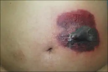 Injection site reactions are allergic reactions that result in cutaneous necrosis that may occur at sites of medication injection, typically presenting in one of two forms, (1) those associated with intravenous infusion or (2) those related to intramuscular injection.[1]: 123–4 Intra muscular injections may produce a syndrome called livedo dermatitis.[1]: 124