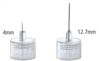 Today, pen needles are manufactured at shorter needle lengths than required for typical vial and syringe administration, which decreases the pain associated with injection.[2] They are available in multiple lengths and gauge of needle, including 3.5mm, 4mm, 5mm, and 8mm lengths, and 31 through 34 gauge.[8] Over time, needles have also had bevels designed which decrease the force required to penetrate the skin, which decreases the pain associated with injection and may increase the acceptability of self-injection.[8] Furthermore, pen needles are designed for insertion at a 90-degree angle to the skin, as opposed to normal syringes which are designed to be injected at an angle. Pen needles generally do not require pinching of the skin for proper administration, unlike historically used syringes.[9] Pen needles should be disposed of properly after each use, preferably in a purpose-made sharps container, to prevent injury from accidental contact after use.[9]