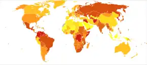 - ↑ 2.0 2.1 2.2 "Global, regional, and national age-sex specific all-cause and cause-specific mortality for 240 causes of death, 1990-2013: a systematic analysis for the Global Burden of Disease Study 2013". Lancet. 385 (9963): 117–71. 17 December 2014. doi:10.1016/S0140-6736(14)61682-2. PMC 4340604. PMID 25530442.
