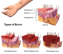 - ↑ 12.0 12.1 Jeschke, Marc G.; van Baar, Margriet E.; Choudhry, Mashkoor A.; Chung, Kevin K.; Gibran, Nicole S.; Logsetty, Sarvesh (2020-02-13). "Burn injury". Nature Reviews. Disease Primers. 6 (1): 11. doi:10.1038/s41572-020-0145-5. ISSN 2056-676X. PMC 7224101. PMID 32054846.
