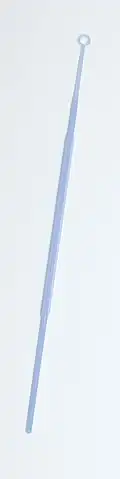 An inoculation loop (also called a smear loop, inoculation wand or microstreaker) is a simple tool used mainly by microbiologists to pick up and transfer a small sample of microorganisms called inoculum from a microbial culture, e.g. for streaking on a culture plate.[1][2] This process is called inoculation.