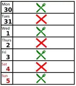 - ↑ Alhamdan BA, Garcia-Alvarez A, Alzahrnai AH, et al. (September 2016). "Alternate-day versus daily energy restriction diets: which is more effective for weight loss? A systematic review and meta-analysis". Obesity Science & Practice. 2 (3): 293–302. doi:10.1002/osp4.52. PMC 5043510. PMID 27708846.