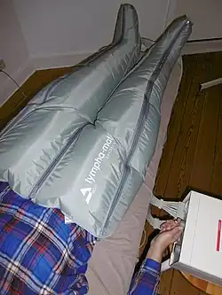 - ↑ Schwenk W, Haase O, Junghans T (April 2002). "Perspectives in sequential pneumatic compression of the lower extremities (SCD) for laparoscopic surgery". Acta Chir. Belg. 102 (2): 83–91. doi:10.1080/00015458.2002.11679272. PMID 12051096. S2CID 20723309.