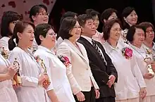 In 2003, after the outbreak of highly contagious SARS, President Chen Shui-bian visited a hospital on International Nurses Day to express admiration for 3 nurses who died of SARS, among other medical personnel fighting on the frontline. He conveyed wishes to nurses for their devotion to duty of caring and reminded hospital staff that they should adopt strict precautionary measures to protect themselves before contacting with patients.[14]