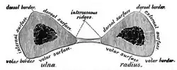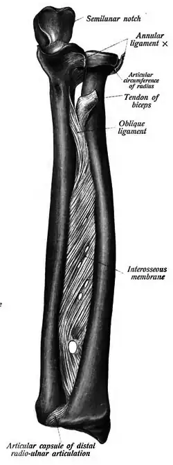 ![]() Interosseous membrane. Ulna and radius, left arm. | |