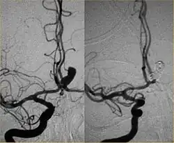 - ↑ Zenteno, M (Feb 2010). "Ten-year follow-up of giant basilar aneurysm treated by sole stenting technique: a case report". J Med Case Rep. 4: 64. doi:10.1186/1752-1947-4-64. PMC 2843709. PMID 20175900.