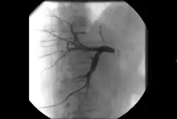 While jaundice can be caused by a few viruses that the human body can naturally clear, jaundice in the setting of an obstruction is usually caused by a cancer and can result in intolerable itching and a worsening of liver function that can be life-threatening. Depending on a patient's condition, this type of obstructive jaundice can be alleviated with surgery or chemotherapy but if these measures fail to restore proper flow of bile, an interventional radiologist can perform a procedure called a percutaneous transhepatic cholangiography (PTC).[21]