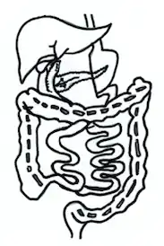 First performed in 1963, the jejunocolic bypass is regarded as the first type of intestinal bypass surgery. This surgery anastomoses the proximal duodenum to the transverse colon (a part of the large intestine). The surgery, nevertheless, turned out to be a huge failure as patients suffered from severe electrolyte imbalance and metabolic disturbance after it.[5]