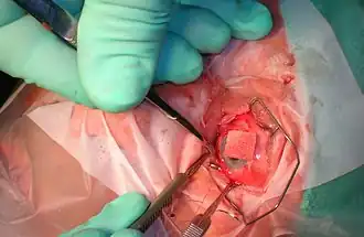 - Osteo-odonto-keratoprosthesis is surgery in which support for an artificial cornea is created from a tooth and its surrounding jawbone.[17] This is a still-experimental procedure used for patients with severely damaged eyes, generally from burns.[18]