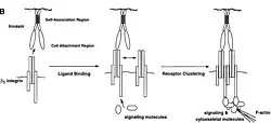 Invasin is a small membrane bound protein that enables the infiltration of cultured mammalian cells by enteric bacteria. The cellular entry of invasin is facilitated through the binding of multiple β1 chain integrins.[5] The interplay between invasin and β1 integrins initiates a reconfiguration of the cytoskeleton in the target cell, culminating in the creation of a groove and the internalization of bacteria through endosomes by the cell. Invasin is expressed inYersinia enterocolitica and Yersinia pseudotuberculosis because of its outermembrane being chromosomally encoded.[6] Invasin demonstrates a significantly enhanced binding affinity to β1 integrins compared to the natural ligands of the receptor. More precisely, it forms a robust attachment to the α5β1 integrin, typically employed by fibronectin, exhibiting roughly 100 times greater strength. This heightened binding capability arises from structural disparities between the two proteins. The extracellular region of invasin adopts a rod-like configuration, with dimensions measuring approximately 180 Å by 30 Å by 30 Å.[7]