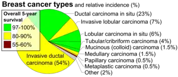 - ↑ Arpino G, Bardou VJ, Clark GM, Elledge RM (2004). "Infiltrating lobular carcinoma of the breast: tumor characteristics and clinical outcome". Breast Cancer Res. 6 (3): R149–56. doi:10.1186/bcr767. PMC 400666. PMID 15084238.