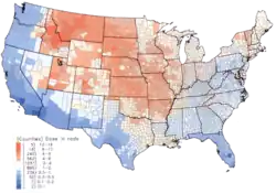 Per capita thyroid doses in the continental United States resulting from all exposure routes from all atmospheric nuclear tests conducted at the Nevada Test Site from 1951 to 1962. A Centers for Disease Control and Prevention/ National Cancer Institute study claims that nuclear fallout might have led to approximately 11,000 excess deaths, most caused by thyroid cancer linked to exposure to iodine-131.[18]