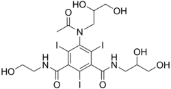 Ioxilan is a diagnostic contrast agent.[1] It is injected intravenously before taking X-ray images to increase arterial contrast in the final image. It was marketed in the US under the trade name Oxilan by Guerbet, L.L.C., but was discontinued in 2017.[2]