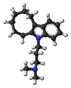 - ↑ Horn AS, Trace RC (July 1974). "Structure-activity relations for the inhibition of 5-hydroxytryptamine uptake by tricyclic antidepressants into synaptosomes from serotoninergic neurones in rat brain homogenates". British Journal of Pharmacology. 51 (3): 399–403. doi:10.1111/j.1476-5381.1974.tb10675.x. PMC 1776771. PMID 4451753.