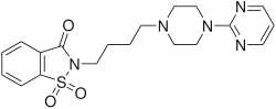 • InChI=1S/C19H23N5O3S/c25-18-16-6-1-2-7-17(16)28(26,27)24(18)11-4-3-10-22-12-14-23(15-13-22)19-20-8-5-9-21-19/h1-2,5-9H,3-4,10-15H2 checkY