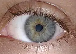 Iris color is a highly complex phenomenon consisting of the combined effects of texture, pigmentation, fibrous tissue, and blood vessels within the iris stroma, which together make up an individual's epigenetic constitution in this context.[4] An organism's "eye color" is actually the color of one's iris, the cornea being transparent and the white sclera entirely outside the area of interest.