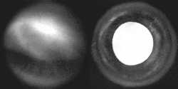 Fluorescein angiograpy of the iris reveals a radial layout of blood vessels.
