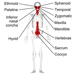 Irregular bones in human skeleton. (shown in red).