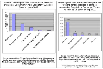 Protozoal infections can cause symptoms that mirror specific IBS subtypes,[45] e.g., infection by certain substypes of Blastocystis hominis (blastocystosis).[46][47]