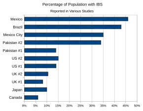 - ↑ Schmulson M, Ortíz O, Santiago-Lomeli M, Gutiérrez-Reyes G, Gutiérrez-Ruiz MC, Robles-Díaz G, Morgan D (2006). "Frequency of functional bowel disorders among healthy volunteers in Mexico City". Digestive Diseases. 24 (3–4): 342–7. doi:10.1159/000092887. PMID 16849861. S2CID 3275233.