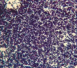 Gram staining allows for visualization of the bacteria's cell wall composition based on the color the bacteria stains after a series of staining and decolorization steps.[5] This staining process allows for the identification of gram-negative and gram positive bacteria. Gram-negative bacteria will stain a pink color due to the thin layer of peptidoglycan. If a bacteria stains purple, due to the thick layer of peptidoglycan, the bacteria is a gram-positive bacteria.[5]