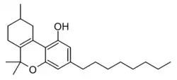 The Δ36a(10a) isomer was synthesised in 1941, but was found to be slightly less active than Δ3-THC itself.[3] The alternate isomer Δ9-THC-C8 has also been synthesised,[4] and both the Δ8 and Δ9 isomers are included within the definition of an "intoxicating cannabinoid" in Colorado under the name tetrahydrocannabioctyl,[5] but it is unclear if it has been identified as a natural product. Tetrahydrocannabioctyl is sometimes referred to as THC-Octyl or THC-O, which may cause confusion with THC-O-acetate which is commonly known as THC-O on packaging for grey market vaping liquids sold for use in humans. Both Δ8 and Δ9 (C8)-THC have been sold as designer drugs, first identified in Denmark in August 2024.[6]