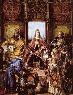 King Władysław Jagiełło, using jewels donated by his wife, Queen Jadwiga, financed the restoration of the University in 1400. Stanisław of Skarbimierz, the first Rector of the University, stressed the importance of the Faculty of Medicine already in his inauguration speech. Soon after the restoration process, renowned Polish and foreign scholars began to arrive at the University. Jan Kro of Chociebuż (Johannes Kro de Kostebus) was one of its first Professors, as well as the first physician to be chosen as Rector of the University, a position he assumed in 1419. Other notable scholars include Jan of Pawia (Johannes de Saccis de Pavia), who introduced the first statute of the Faculty of Medicine in 1433, Marcin Król of Żurawica, and Piotr Gaszowiec of Loćmierz, who, in addition to medicine, displayed great interest in astronomy and astrology.