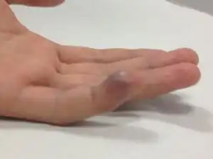 | Bruising and swelling as seen in jersey finger | |