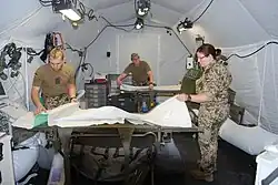 The Joint Medical Service (German: Zentraler Sanitätsdienst der Bundeswehr, short form: Zentraler Sanitätsdienst, pronounced [t͡sɛnˈtʁaːlɐ zaniˈtɛːt͡sˌdiːnst] ⓘ) is a part of the Bundeswehr, the armed forces of Germany and serves all three armed services (Army, Navy and Air Force, as well as the Cyber and Information Domain Service). Members of the central medical corps remain members of their respective military branches. Only a few specialized medical units such as the medical care for divers and aircraft crews are not incorporated in the Joint Medical Service. Prior to 2002 each military branch had its own medical service. The services were then largely merged, forming the Joint Medical Service. In May 2021 the minister of defense Annegret Kramp-Karrenbauer together with Inspector General of the Bundeswehr Eberhard Zorn published a plan to dissolve the Joint Medical Service and to reintegrate its units into the army, navy, airforce and cyber command.[2]