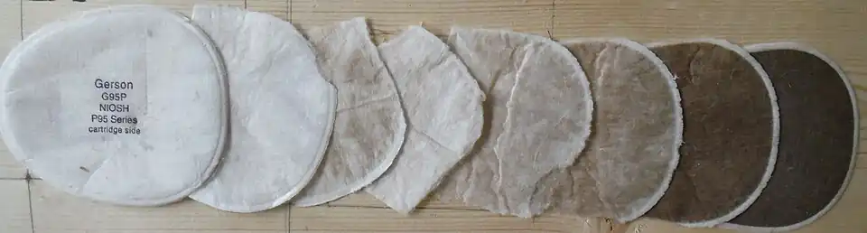 - ↑ Lee, Byung Uk; Yermakov, Mikhail; Grinshpun, Sergey A. (2005). "Filtering Efficiency of N95- and R95-Type Facepiece Respirators, Dust-Mist Facepiece Respirators, and Surgical Masks Operating in Unipolarly Ionized Indoor Air Environments" (PDF). Aerosol and Air Quality Research. 5 (1): 25–38. doi:10.4209/aaqr.2005.06.0003. Archived (PDF) from the original on 20 January 2022. Retrieved 4 July 2024.
