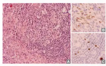 - ↑ Chen BJ, Chuang SS (March 2020). "Lymphoid Neoplasms With Plasmablastic Differentiation: A Comprehensive Review and Diagnostic Approaches". Advances in Anatomic Pathology. 27 (2): 61–74. doi:10.1097/PAP.0000000000000253. PMID 31725418.