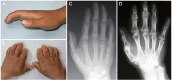 {{cite journal}}: CS1 maint: multiple names: authors list (link) - ↑ 4.0 4.1 Xiong G (2001). "Diagnostic, clinical and radiological characteristics of Kashin–Beck disease in Shaanxi Province, PR China". Int Orthop. 25 (3): 147–150. doi:10.1007/s002640100248. PMC 3620652. PMID 11482528.