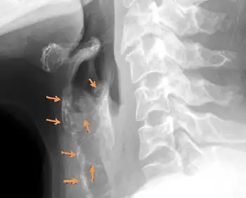 Many common effects sharing similarity with chondrodysplasia punctata stem from cartilaginous origin. Radiography reveals extensive diffuse cartilaginous calcification. Pulmonary angiography and soft tissue radiography often demonstrate significant cartilaginous ossification in the trachea and larynx, with perichondral and endochondral centers significantly ossified in transformed cartilage.[11] Abnormal diffuse cartilaginous ossification is typically most pronounced in the auricles and cartilage of the trachea and larynx, while peripheral pulmonary stenosis is frequently common in KS. In consanguineous parents of children with KS, one is often phenotypically normal, while the other is positive for pulmonary stenosis. Perhaps emanating from diffuse laryngotracheal calcification, patients often present with recurrent respiratory infection, otitis media, and sinusitis.[12]