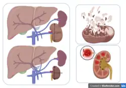 Kidney ischemia[1] is a disease with a high morbidity and mortality rate.[2] Blood vessels shrink and undergo apoptosis which results in poor blood flow in the kidneys. More complications happen when failure of the kidney functions result in toxicity in various parts of the body which may cause septic shock, hypovolemia, and a need for surgery.[3] What causes kidney ischemia is not entirely known, but several pathophysiology relating to this disease have been elucidated. Possible causes of kidney ischemia include the activation of IL-17C and hypoxia due to surgery or transplant. Several signs and symptoms include injury to the microvascular endothelium, apoptosis of kidney cells due to overstress in the endoplasmic reticulum, dysfunctions of the mitochondria, autophagy, inflammation of the kidneys, and maladaptive repair.