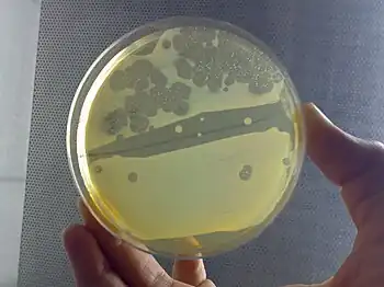 Klebsiella aerogenes,[2] previously known as Enterobacter aerogenes, is a Gram-negative, oxidase negative, catalase positive, citrate positive, indole negative, rod-shaped bacterium.[3]