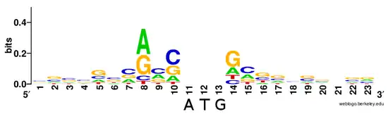 - ↑ Cavener DR (February 1987). "Comparison of the consensus sequence flanking translational start sites in Drosophila and vertebrates". Nucleic Acids Res. 15 (4): 1353–61. doi:10.1093/nar/15.4.1353. PMC 340553. PMID 3822832.