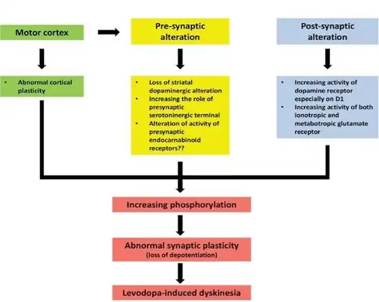 - ↑ Pandey, Sanjay; Srivanitchapoom, Prachaya (2017). "Levodopa-induced Dyskinesia: Clinical Features, Pathophysiology, and Medical Management". Annals of Indian Academy of Neurology. 20 (3): 190–198. doi:10.4103/aian.AIAN_239_17. ISSN 0972-2327.