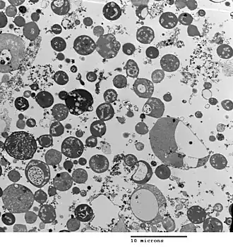 L-form bacteria, also known as L-phase bacteria, L-phase variants or cell wall-deficient bacteria (CWDB), are growth forms derived from different bacteria. They lack cell walls.[1] Two types of L-forms are distinguished: unstable L-forms, spheroplasts that are capable of dividing, but can revert to the original morphology, and stable L-forms, L-forms that are unable to revert to the original bacteria.
