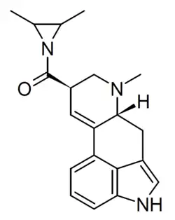 LA-Aziridine, also known as N-(2,3-dimethylaziridin-1-yl)lysergamide or as lysergic acid-(2,3-dimethylaziridinyl)amide, is a chemical compound of the lysergamide family related to lysergic acid diethylamide (LSD).[1][2][3][4] It is an analogue of LSD in which the N,N-diethyl groups have been fused together to form an N-(2,3-dimethylaziridine) ring moiety.[1][3][4] The compound has two additional chiral centers in the aziridine region and thus has three diastereomeric forms: (R,R)-trans, (S,S)-trans, and cis.[4] LA-Aziridine is closely related to lysergic acid 2,4-dimethylazetidide (LA-Az, LSZ, or LA-Azetidide).[2]