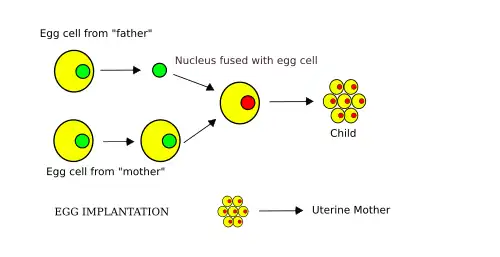 There is theoretical work being done on creating a zygote from two women which would enable both women to be biological mothers, but it is yet to be practically implemented.[83] Creating a sperm from an egg and using it to fertilize another egg may offer a solution to this issue,[5] as could a process analogous to somatic cell nuclear transfer involving two eggs being fused together.[89]