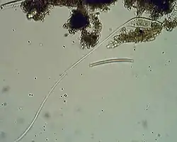 The protist is notable for its ability to extend its "neck" by up to thirty times the length of its body (about 1.2 mm), and manipulate in many directions very rapidly — even around obstacles — in order to capture its food.[2][3] Such extension is not in and of itself unique, but the organism's ability to do the extension quickly and repeatedly sets it apart from others.[3] The molecular mechanism underlying L. olor's "cellular origami" appears to be a helical array of microtubules, presently unique among organisms, uncovered in 2024.[3][4]