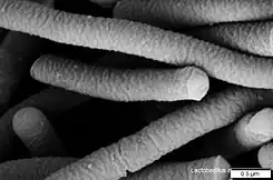 | Lactobacillus acidophilus, Numbered ticks are 11 μm | |