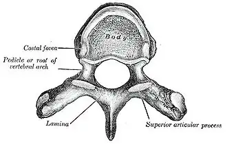 ![]() Upper view of a human vertebra, with the laminae visible | |