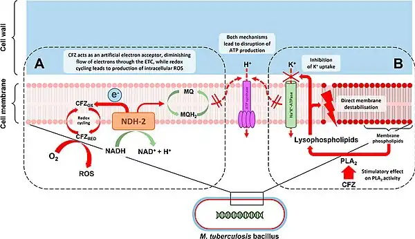 - ↑ Stadler, Jacob A. M.; Maartens, Gary; Meintjes, Graeme; Wasserman, Sean (2 February 2023). "Clofazimine for the treatment of tuberculosis". Frontiers in Pharmacology. 14: 1100488. doi:10.3389/fphar.2023.1100488. ISSN 1663-9812.