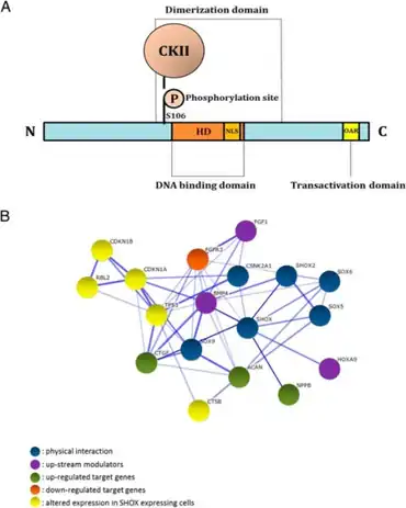 | a)Schematic view SHOX protein b) cellular factors that interact with SHOX | |