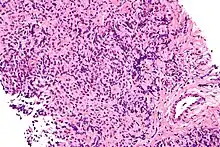 | Micrograph of a primary mediastinal large B-cell lymphoma, a type of large-cell lymphoma. H&E stain. | |