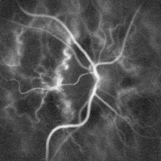 ![]() Microangiography of the optic disc region of the human retina, by laser Doppler imaging. The image was rendered computationally by optical wave propagation and measurement of optical fluctuations. | |