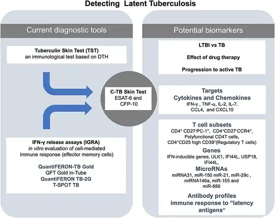 There are two classes of tests commonly used to identify patients with latent tuberculosis: tuberculin skin tests and IFN-γ (Interferon-gamma) tests.[36]