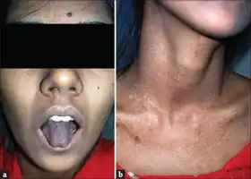 - ↑ 1.0 1.1 Nayak, RS; et al. (2012), "Laugier–Hunziker syndrome", J Oral Maxillofac Pathol, 16 (2): 245–250, doi:10.4103/0973-029X.99079, PMC 3424942, PMID 22923898.