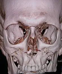 - ↑ Lo Casto, A; Priolo, G. D.; Garufi, A; Purpura, P; Salerno, S; La Tona, G; Coppolino, F (2012). "Imaging evaluation of facial complex strut fractures". Seminars in Ultrasound, CT and MRI. 33 (5): 396–409. doi:10.1053/j.sult.2012.06.003. PMID 22964406.